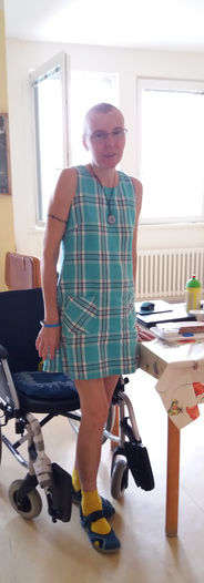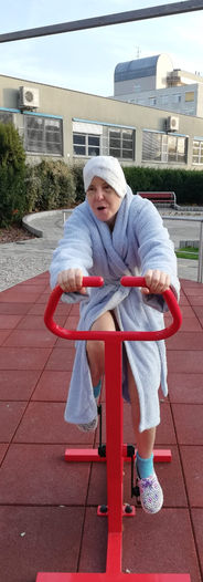 Po jedné pravidelné MR (byl konec června roku 2017) mi sestřička z neurologické ordinace volala do práce, že mi připraví zdravotní dokumentaci a mám domluvenou konzultaci ve Fakultní nemocnici v HK. Pořád jsem neměla ani tušení, jak moc je celá situace vážná. Teprve v Hradci mně všechno rychle došlo. Namířila jsem si to na své známé oddělení neurologie, kam jsem pravidelně docházela. Ouha, tam mi oznámili, že tam žádnou konzultaci nemají hlášenou. Odkázali mně na neurochirurgii. Tam si mně převzal MUDr. Vladimír Hobza, Ph.D. (... a nepustil do dneška, za což jsem mu vděčná, neb když někomu někdo zachrání život, pak jeho život náleží zachránci). Byl to on, kdo mi sdělil: „Váš život je ohrožen, máte otok na mozku.“ Doporučil mi okamžitý nástup do nemocnice. Já se v tu chvíli zmohla jen na kroucení hlavou, jako že ne, ne a ne. TO NENÍ možné!! Během minuty jsem měla život naruby. Snad jsem ani nedýchala, nebyla jsem schopná mluvit, jen mi stékaly slzy po tvářích. Pan doktor pokračoval, úspěšnost operace je 50% a pravděpodobně zůstanete ochrnutá na pravou polovinu těla a už na mně otáčel monitor počítače a ukazoval mi moji MR. Konečně jsem se zmohla na větu, ale to není možné, to není moje, nemám žádné další zdravotní problémy a chodím do práce. Do dneška si pamatuji jeho větu (a budu si ji pamatovat na vždy) pacientka neguje své onemocnění. Tato věta mně úplně odbourala. Potom mi dokázal, že můj zdravotní stav není až tak úplně v pořádku. A já jeho argumenty chtě-nechtě musela přijmout. No, dopadlo to tak, že jsem jela oznámit do práce, že nebudu delší dobu pracovat. Pokud vůbec ještě budu... a 30. 6. 2017 jsem nastoupila do nemocnice: infuze, injekce, kanyla, kortikoidy, stříhání dohola, byla jsem jak v jiném světě (to snad není můj život, to jen sen, probudím se a bude zase vše OK) znovu MR. Můj den „D“ byl 4. 7. 2017. Operace trvala 6 hodin, probrala jsem se na JIP. Trčely ze mě různé hadičky, byla jsem napojená na monitor-pípání, ve dne i v noci, nemohla jsem mluvit, hýbat pravou rukou a nohou. Nebudu se už dál rozepisovat, nebyly to zrovna hezký chvilky . Na JIP jsem začala s rehabilitací, pod odborným dohledem, po pár dnech následoval převoz na normální pokoj, dále pak převoz na neurologii do Trutnova, pobývala jsem i na rehabilitačním oddělení a následovaly Janské Lázně, RÚ Kladruby. Pořád jsem nebyla schopna chodit, učila jsem se přemísťovat na invalidním vozíku (ten používám dodnes), to už pár krůčků zvládnu s berlemi. A aby toho nebylo málo, přišla za mnou hluboká žilní trombóza (v třísle u pravé nohy). Tady jsem prožívala opravdu vážnou krizi. MOC MOC jsem chtěla chodit a CHCI! Skončila jsem na interně v nemocnici v Trutnově. Brrr... už nikdy více, ne, ne a ne!!